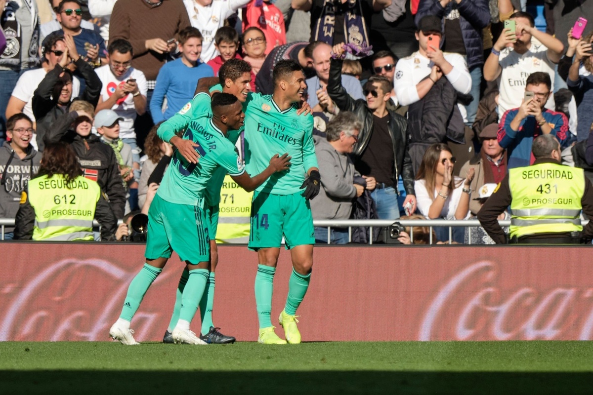 Сегодня в 15:00 состоялся матч 16 тура Испанского чемпионата между Мадридским Реалом и Каталонским Эспаньолом. Стартовые составы команд : Реал Мадрид : Вратарь : Тибо Куртуа Защита : Карвахаль, Рамос, Варан, Менди Полузащита: Вальверде, Каземиро, Кросс Нападение : Бензема, Родриго, Винисиус. Замены: Модрич, Милитао, Браим Диас. Эспаньол : Вратарь : Диего Лопес Защита: Калеро, Эспиноса, Давид Лопес Полузащита : Гранеро, Дардер, Рока, Вила, Гомес Нападение : Кальери, Ву Лей. Замены: Кампусано, Лосано, Мелендо. Итоговый счёт : Реал Мадрид 2-0 Эспаньол Голы: 37' Варан (Бензема), 79' Бензема (Вальверде) Жёлтые карточки : 15' Гранеро, 17' Винисиус, 61' Калеро, 63' Менди, 74' Вальверде, 82' Менди, 91' Дардер. Красные карточки : 82'Менди Лучший игрок матча: Вальверде Эта уверенная победа выводит Реал на единоличную первую строчку, но нельзя забывать, что у Барселоны сегодня матч с Мальоркой.