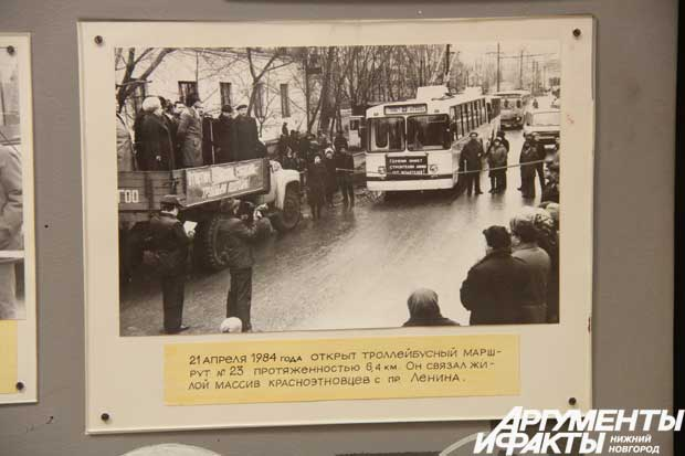 Появление нового вида транспорта стало настоящим праздником. Газета «Горьковская коммуна» писала о торжественном событии 27 июня 1947 года: «Блистающие свежестью окраски машины выстроились вереницей у красной ленты на пл. Минина. Отсюда троллейбусы пойдут в свой первый рейс… Перерезана лента, перегораживающая путь машинам: движение открыто. Водитель Константин Лепилин включает мотор, и машина легко и бесшумно идёт наверх по улице Свердлова… Горьковчане аплодисментами встречают красивые, величавые машины».