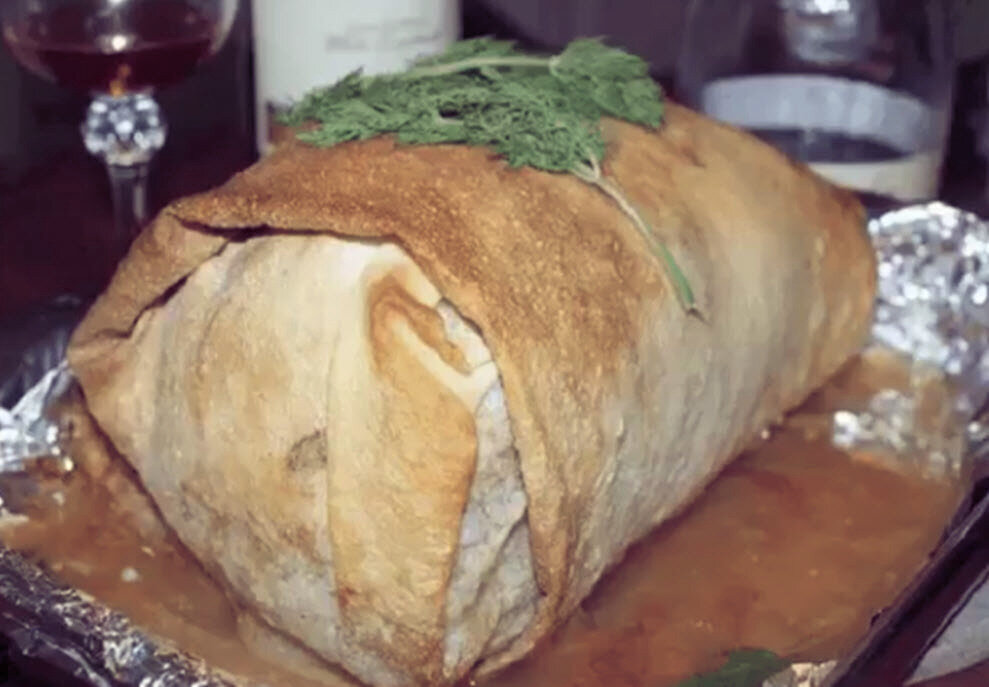 В этом блюде и курица , и начинка, и тесто бесподобны . Сверху получается вкусный хлебный чипс , внизу лаваш , пропитанный соком курицы . Начинка может быть разной , по Вашему выбору . Я , предлагаю на выбор две начинки - рисовую и томатную с сыром . Курицу солим , перчим , обмазываем специями ., чесноком .Оставляем на несколько часов мариноваться . Можно приготовить маринад - лимонный сок -2-3 ст.л соединить с подсолнечным маслом , добавить специи , чеснок , соль . и ним обмазать курицу . Ингредиенты : 1-я Начинка 2-я Начинка Приготовление : Листы лаваша стелим внахлёст , смазываем растительным маслом и заворачиваем курицу . Выкладываем курицу , завёрнутую в лаваше на застеленный фольгой противень . Сверху смазываем растительным маслом , накрываем фольгой (не плотно) и ставим в разогретую до 180 гр духовку . Запекаем примерно 1 час ( зависит от размера курицы ) За 20 минут до готовности снимаем фольгу , для того , чтобы лаваш зарумянился . Готовую курицу достаём из