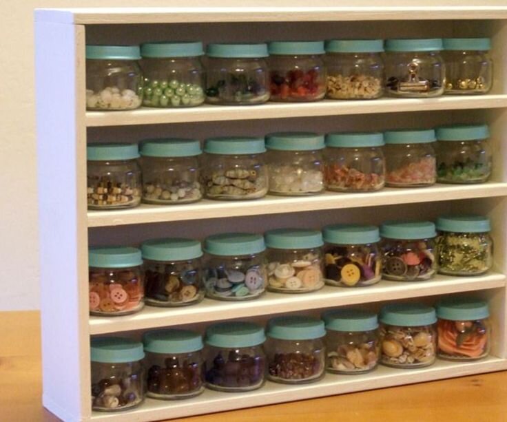 Если собрать хотя бы десяток баночек одинакового размера, можно создать из них удобную систему хранения. Сделать ее несложно.