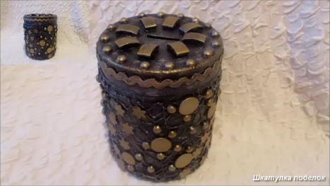 Доброго времени суток друзья. У нас дома копилкой служат всякие стаканчик,баночки или что то еще вообщем монеты везде попадаются на глаза.Вот и наткнувшись в интернете на копилки .Мне захотелось сделать себе тоже копилку своими руками.И конечно же поделится с вами такой идеей. Кстати такую копилку и не стыдно будет преподнести в качестве подарка друзьям. И делать ее несложно. Для работы понадобятся: 1.Банка от клея ПВА 2.Флористическая сетка 3.Различные украшения 4.Полимерный клей Титан,термоклей 5.Акриловые краски,акриловый лак Первое что я сделала это взяла баночку у меня осталась пластиковая от клея ПВА,как раз то что нужно не разобьется.И крышка трудновато снимается лишний раз копилку не вскроешь . Я ее отмыла хорошенько. Затем вокруг крышки срезала канцелярским ножом все неровности. Примерно по середине нарисовала отверстие для монет, и вырезала