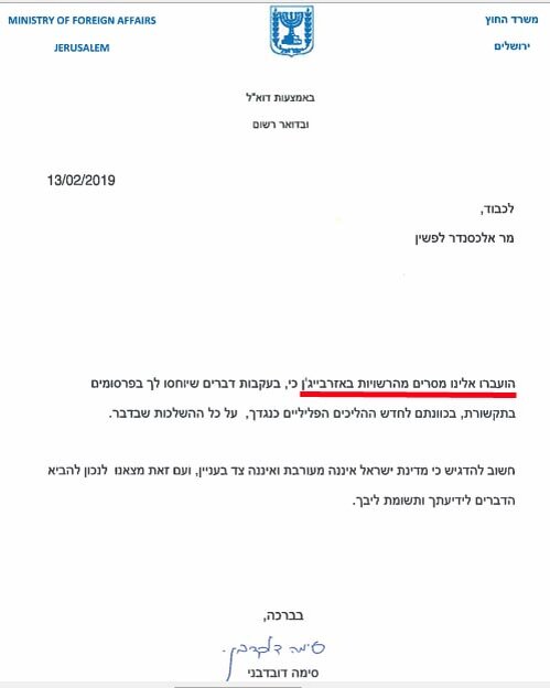 Интересно, они кого пытаются обмануть? Это же официальный документ из МИД Израиля, имеющий свой номер, дату, под ним подписан конкретный чиновник.