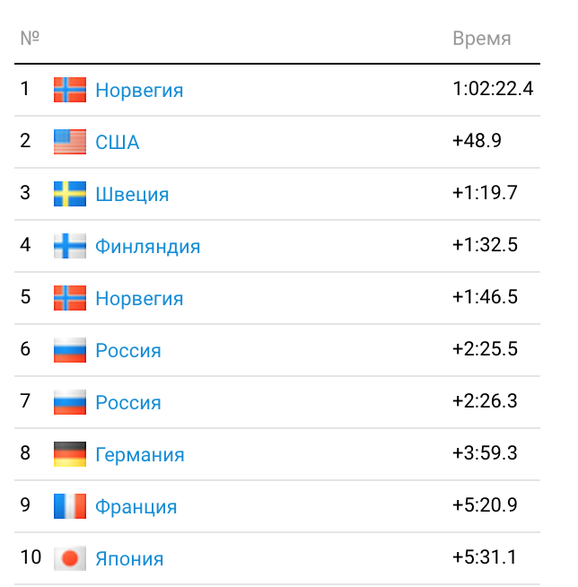 Сборная России 2 выиграла лыжную эстафету в Лиллехаммере, Россия 1 - вторая