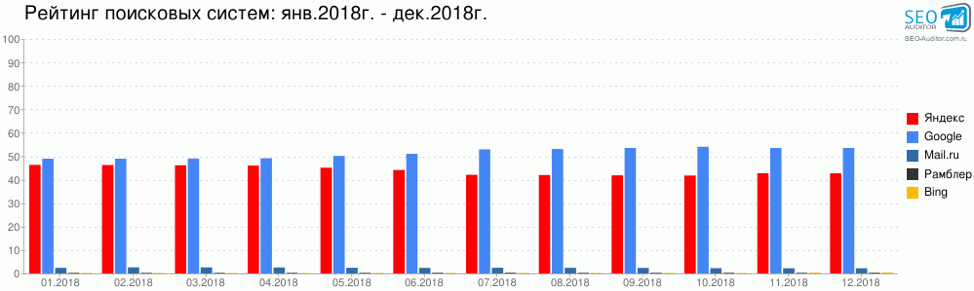 «Google Ads или Яндекс.Директ?» – этот вопрос задает практически каждый клиент web-студий и рекламных агентств. И хоть Google продолжает занимать значительную долю рынка (ниже представлены данные от «SEO-Auditor») и обладает рядом неоспоримых преимуществ (от возможностей минимизировать цену клика до интеллектуальных стратегий и машинного обучения), большинство агентств предлагает остановить выбор на Яндексе.