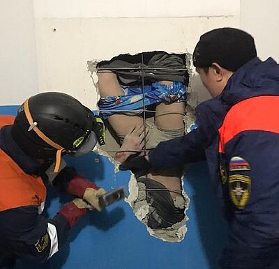 Он пролетел на 28 метров вниз и застрял на высоте первого этажа. По данным МЧС Республики Саха (Якутия), этот необычный вызов экстренных служб поступил в час ночи в воскресенье, 8 декабря, от жителей одного из домов на Сергеляхском шоссе. Люди рассказывали, что из стены доходят крики человека о помощи. Когда спасатели прибыли на место происшествия, они обнаружили, что человек кричит который застрял в вентиляции, на уровне первого этажа, упав туда с высоты 10-го технического этажа, который составляет около 28 метров. Находясь на 10 этаже, этот человек бросил свои валенки в вентиляцию. Решив заполучить их обратно, он сам «нырнул» вниз. Спасатели вскрыли стену, чтобы деблокировать несчастного. По словам специалистов, ему удалось выжить благодаря тому, что шахта сужается к низу. Мужчина попросту застрял в ней. Кроме того, первыми в вентиляцию улетели валенки — они и спасли своего хозяина от смерти, смягчив ему удар. Пострадавший был передан фельдшерам, сообщает МЧС Республики Саха (Якутия