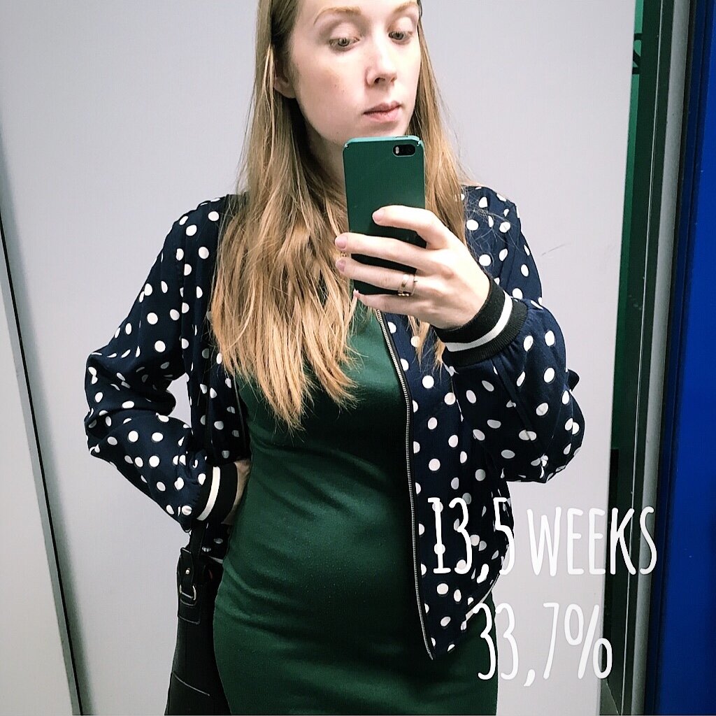 Внешние изменения набирают обороты. Живот все больше и виднее. Правда, пока что это выглядит так, как будто я просто очень много поела. Подозреваю, что через месяц уже не получится скрывать животик на работе. Ну да ладно.