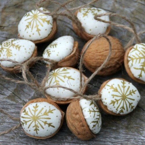 Самые красивые украшения всегда делаются вручную. У них есть не только своя история, но и вся семья может участвовать в их создании. Отец может срывать орехи, дети красить или вырезать ткань с новогодними рисунками, а мама контролировать весь процесс. Вам понадобятся: • скорлупа грецкого ореха • ткань с рождественскими мотивами • ленты или нитка • ножницы, игла • клей • вата или остатки ткани. Время, проведенное с любимыми людьми и за интересным занятием, всегда незабываемо! Желаем вам добра!