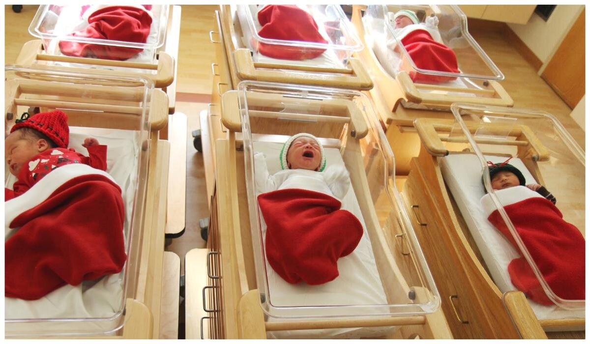 Милейшая традиция из женской больницы Маги, Пенсильвания! В канун праздника малышей заворачивают в рождественский носок и надевают на них вязаную шапочку. А в детской больнице Техаса уже более 50 лет в носке и шапочке выписывают всех крошек, родившихся в декабре. Многие родители хранят эти носки и каждый год складывают в них подарки уже подросшим детям.