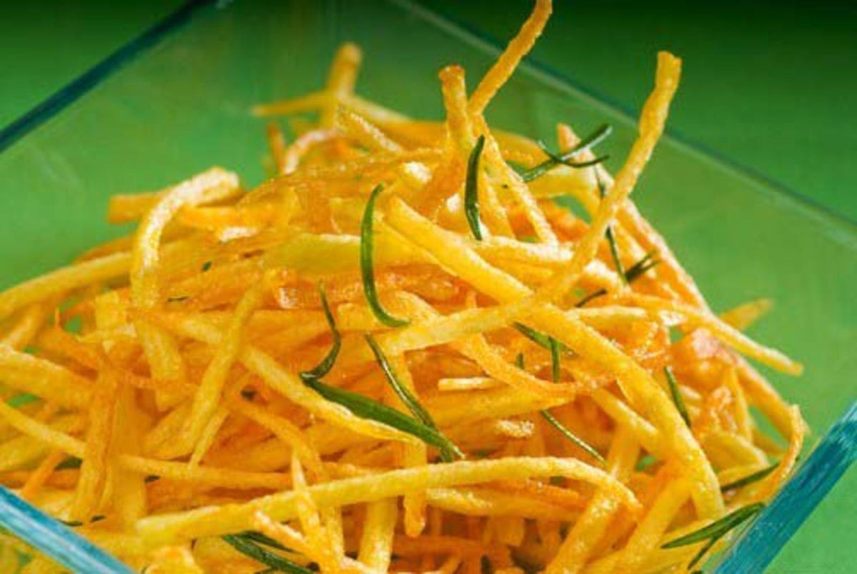 ИНГРЕДИЕНТЫ: ПРИГОТОВЛЕНИЕ: 1. Разогрейте вок на среднем огне и добавьте арахисовое масло, хорошо распределив его по поверхности. Добавьте чеснок, нарезанный тонкой соломкой имбирь и чили и обжарьте 30 секунд до появления запаха. 2. Добавьте очищенную и нарезанную очень тонкой соломкой морковь и обжарьте минуту. 3. Влейте воду и соевый соус, накройте крышкой и тушите , пока вода не выпарится. 4. Затем добавьте слегка раскрошенный сычуаньский перец. Готовьте еще минуту и подавайте.