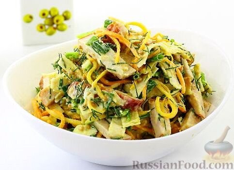 Рецепт вкусного салата с копчёной курицей и кусочками лаваша. Необычный салат удивит гостей за праздничным столом. Технология приготовления салата довольно простая и не требует длительной подготовки. Приготовьте этот салат на новогодний стол 2020!