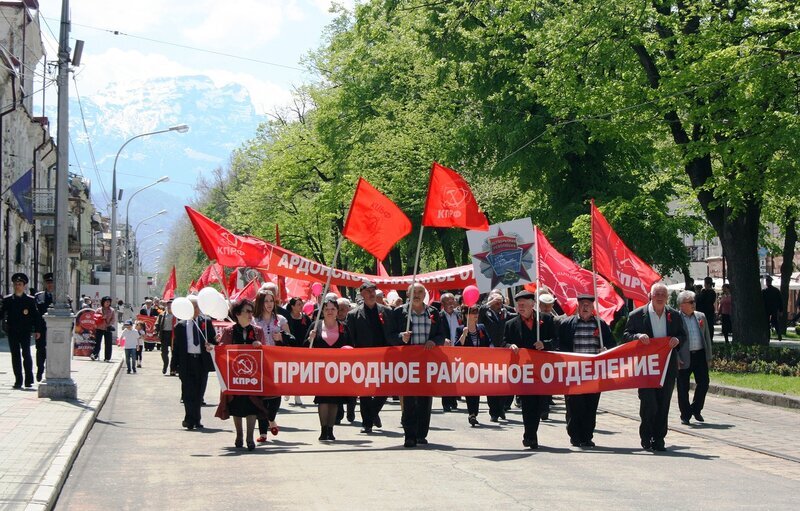«Чиж & Со» Первомайские праздники застали нас на Кавказе. В бывшем Орджоникидзе – одном из самых интересных городов у подножья гор. До постов о городе я дойду позже, а вот показать первомайскую демонстрацию хочу сегодня. Тем более такого колорита вы не увидите в Твери или Омске. Здесь всё интереснее. Казалось бы флаги, транспаранты и звуки музыки. Всё как обычно. Но это Кавказ. Здесь не может быть всё как обычно. Рядом с пожилыми коммунистами бодро шагает молодежь в национальных костюмах. Смотрите, какая красота. Настоящие джигиты шагают рядом девушками. Я вот не могу себе представить, что б моем родном Орле на такой же демонстрации шагали девушки в кокошниках и молодцы в косоворотках. В центральной России это какой-то консервативный праздник для пенсионеров. А ведь идея-то хорошая. Это праздник всех трудящихся. Именно праздник с большой буквы. Я не имею понятия, какие позиции занимает КПРФ на Кавказе, но судя по количеству флагов их там любят. Впрочем, народ на Кавказе вообще лю