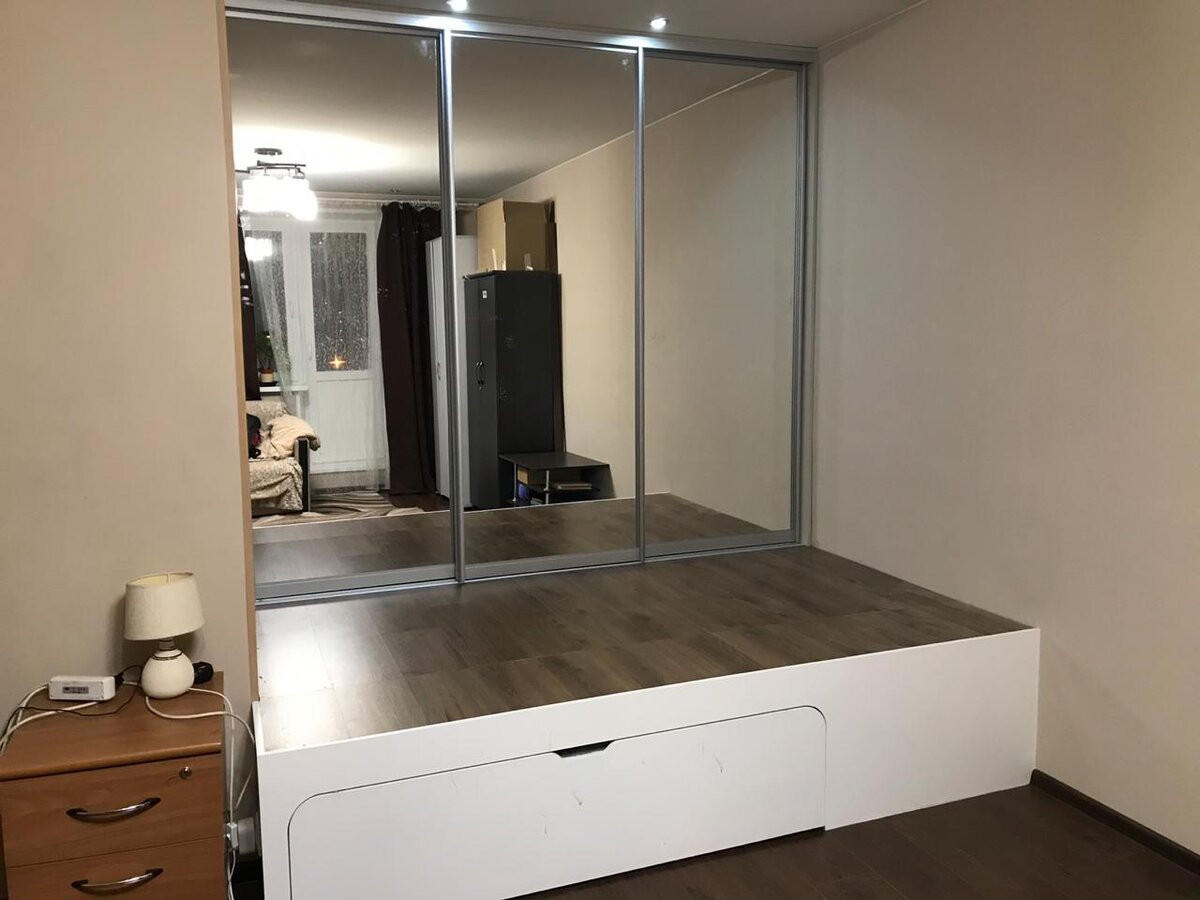 Кровать подиум со шкафом купе