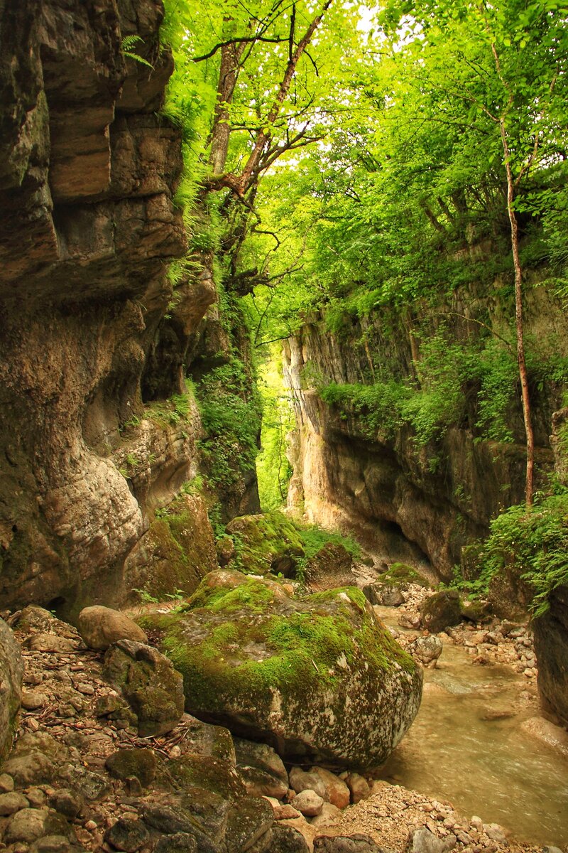 Всем здравия, друзья. Сегодня поведаю вам о прогулке, к водопаду – кольцо. Следует отметить, что такие водопады встречаются довольно редко не только в России, но и во всем мире. Путь к нему лежит через живописный каньон. По дороге можно наблюдать скальные балконы, гроты и вымытые ниши. Летом все покрыто густой растительностью. Первоописание этого водопада привел К.П. Попов (2008г.). “Образовался этот водопад и каменное кольцо (своеобразный природный мост, напоминающий горизонтальную радугу), куда падает вода, вследствие того, что река проточила узкую перемычку – «Скальное окно» в виде кольца в одном из податливых к растворению слоев меловых известняков. Одна часть кольца (самая тонкая) состоит из одного пласта известняков, другая, которая ближе к склону – из двух и даже трех слоев. Подобные каменные мосты или арки могут образоваться несколькими способами. Один из них таков: если породы речного ложа выше водопада разбиты трещинами, то часть воды может просачиваться сначала по трещ