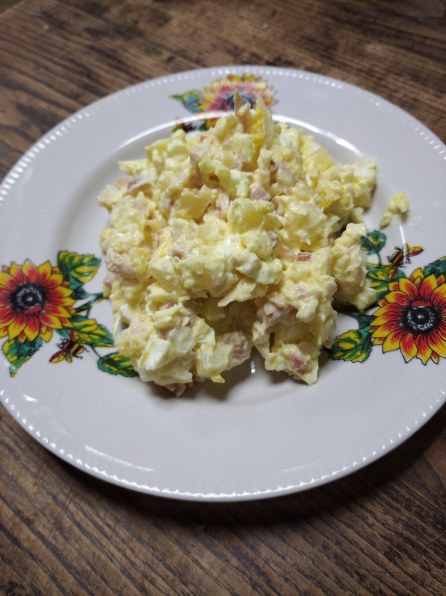 Накануне Новый Год,пора придумывать интересные салатики, именно поэтому хочу с вами поделится вкусным и простым салатом. Для него нам понадобятся: Куриное филе копчёное(можно отварное ,но с копчёным вкуснее); Куриные яйца 5шт; Отварной картофель 4шт; Сыр 200гр.; Ананасы консервированные 1 баночка; Соль по вкусу ; Майонез 200гр.; Все ингредиенты нарезаем кубиком,сыр можно на мелкой тёрке натереть ,либо тоже нарезать кубиком. Соединяем все ингредиенты,солим по вкусу, заправляем майонезом. Можно подавать сразу.Приятного аппетита)