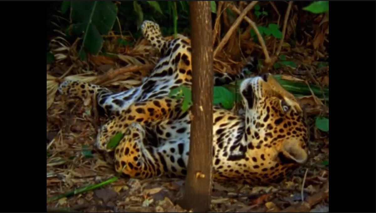 В этих уникальных кадрах из фильма BBC «Weird nature» заснято, как ягуар в перуанском тропическом лесу ест листья Аяваски, или Яге, как называют её некоторые племена. Аяуаска (лат. Banisteriopsis caapi), чье название на кечуа означает «лиана мертвых», - это лиана, которая растет в глубине тропических лесов Амазонки и которая испокон веков использовалась для очищения и лечения коренными народами Южной Америки. По легендам, первый амазонский шаман открыл аяваску, увидев, как ягуар перед охотой ест листья Banisteriopsis caapi. Индейцы говорят, что аяваска обостряет чувствительность ягуара во время охоты. Алкалоид, выделенный из аяуаски, гармин, в первых научных исследованиях назвали "телепатин", так как представители местных племен считали, что эта лиана позволяет им общаться телепатически. Перевод и русскоязычная озвучка видео: «Марири – Дом Аяваски»