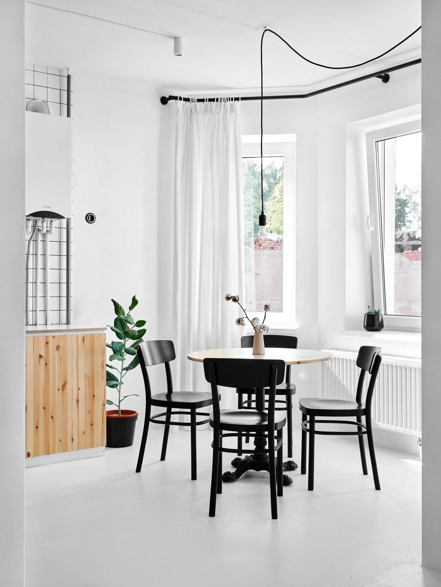 Проект Flat 2.0 реализовала студия интерьерного дизайна Line Design Studio в Калининграде. Квартира площадью 42 квадратных метра обрела новый образ благодаря полному преображению в пределах относительно небольшого бюджета в 8 200 евро. Дизайнеры стремились к минимализму и функциональности. По всей квартиры можно найти эклектичный выбор решений, от сделанных на заказ дизайнерских изделий до готовой мебели, от предметов искусства на стене до полностью оборудованного рабочего стола. Это проект не жертвует функциональностью ради формы. Белый пол и стены сосуществует параллельно с чёрным и тёмным декором. Контраст даёт интересную визуальную композицию в качестве основного аргумента проекта. HQROOM — ежедневно об архитектуре и инновационном дизайне интерьера