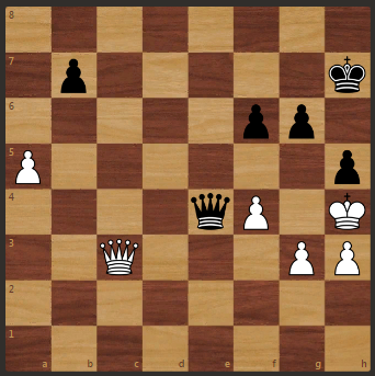 Фрагмент партии де Рой - Крамер, 1922 год. На доске материальное равенство. Белые напали на пешку f6. Однако ход черных и они выигрывают. Подпишитесь на канал и будут новые интересные задачи Решение идет далее 1. .... черные идут пешкой на g5 2. Белые бьют королем на h5, черные - ферзь е2 3. Белые пешкой на g4, черные - ферзь е8 мат Подпишитесь на канал, поставьте лайк, и будут новые интересные задачи ферзь против ферзя хитрый выигрыш тут>>> Выигрыш ферзя увидит не каждый тут>