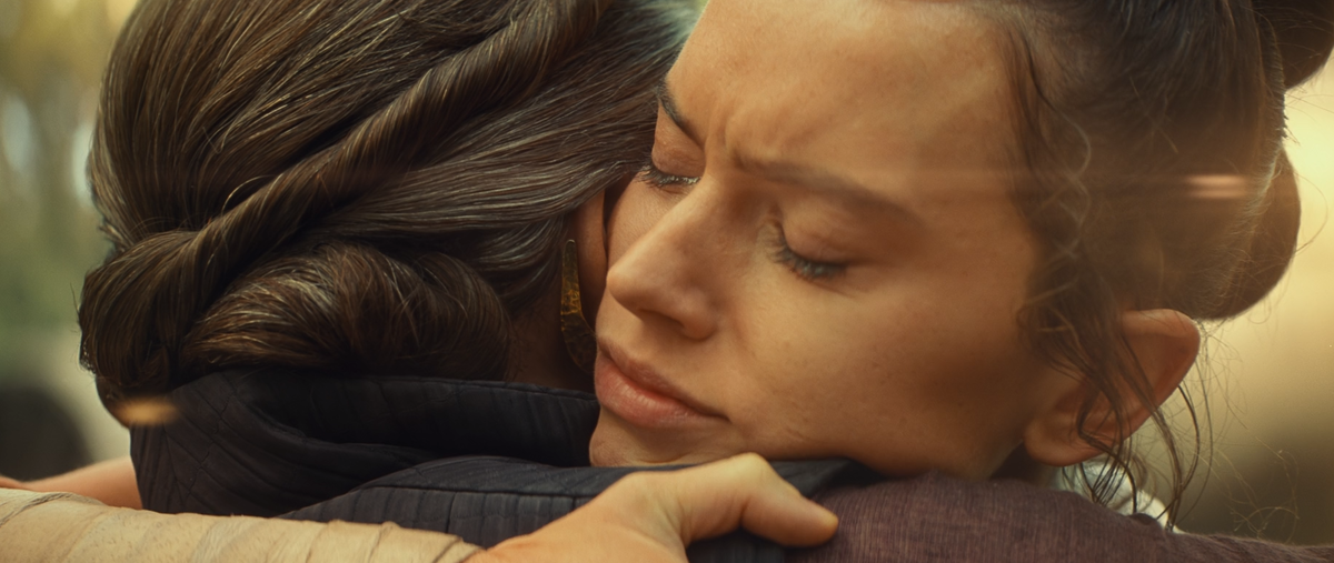 Что бросается в глаза на протяжении всего фильма, так это то, что герои «Звездных войн: Скайуокер. Восход» ТААААК МНОГО разглагольствуют об окончательных действиях и последних шансах, что, клянусь, они знают, что про них снимают кино и это финальная серия 40-летней мега-франшизы. Они говорят о том, что нужно сделать «последний прыжок» на «Соколе тысячелетия», называют Рей «последней надеждой» и тоскливо заявляют, что в последний раз смотрят на своих друзей, прежде чем попрощаться. Бремя сворачивания 40-летней франшизы негативно сказывается на «Звездных войнах: Скайуокер. Восход», фильм перенасыщен событиями и не особо старается нормально закрывать сюжетные линии. Фильм отнёсся к этому спустя рукава, надеясь высосать всё до последней капли из ностальгии и привязанности к этим персонажам и вселенной из аудитории. То, что фильм иногда добивается успеха в этом начинании, даже несмотря на в некоторой степени неуклюжую интригу и ужасную концовку, является заслугой именно этой «далёкой-дал