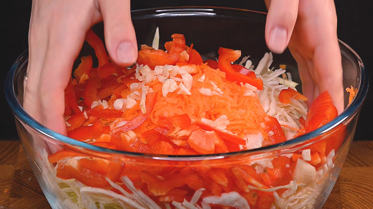 Приготовила маринованную капусту по-новому быстрому рецепту. И что тут началось! За месяц мы съели целое ведро капусты по-казачьи, а зима только началась. Не знаю как вы, а я больше не буду квасить капусту!Теперь это мой любимый рецепт салата на зиму. Экспресс-метод за сутки. Ингредиенты: Капуста - 500 г Морковь - 1 шт Перец болгарский - 1 шт Чеснок - 2 зубчика Маринад: Лавровый лист - 1 шт. Вода - 500 мл Сахар - 0,5 ч. л. Соль - 0,5 ч. л. Уксус яблочный 9% - 50 мл Растительное масло - 50 мл Приготовление: 1. Капусту нашинковать, морковь, перец чеснок измельчить и перемешать. 2. Утрамбовать овощи в банку 3. Сварить маринад. Воду, соль, сахар, лавровый лист, масло довести до кипения. Снять с огня и добавить уксус. 4. Остудить немного маринад и залить им капусту, 5. Отправить банку с капустой в холодильник на 24 часа. Ставьте лайк и подписывайтесь на наш канал: https://www.youtube.com/subscription_center?add_user=delovcusa Посмотрите еще ⭐ Царский завтрак за считанные минуты! Нахо