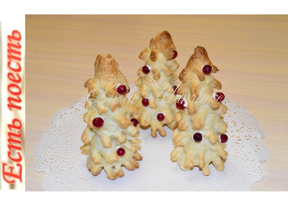 Закусочные ёлочки с начинкой из творожного сыра будут эффектно смотреться и украшать новогодний стол. Из таких ёлочек можно сделать и десерт, начинив их сладким кремом. Заготовки можно испечь заранее, наполнив их кремом перед подачей. Подробнее смотрите в видеоролике. Ингредиенты: Тесто немного раскатать, нарезать полосками. Каждую полоску надрезать (чтобы получилась как бахрома). Обмотать тестом конусы, поставить на противень и выпекать при 19--200 град. 20 минут. Дать остыть и извлечь конусы. Для начинки перемешать сыр, тертые на мелкой терке яйца, тертый чеснок и соль. Выложить начинку в кулинарный пакет и наполнить ёлочки. Для украшения я беру замороженную бруснику и приклеиваю её на небольшое количество крема. Подробнее смотрите в видеоролике. Приятного аппетита и удачных экспериментов на кухне! =============================================== Если вам понравился рецепт - поделитесь ссылкой на него в социальных сетях и поставьте лайк. ПОДПИСЫВАЙТЕСЬ НА МОЙ ПРОФИЛЬ https://ze