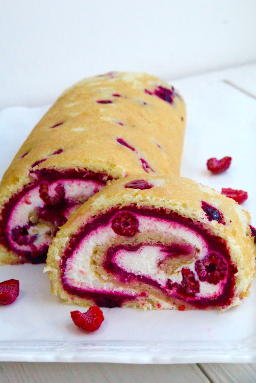 - Готовый рулет снимаем с пергамента и закручиваем в рулет на полотенце, присыпанным сахарной пудрой.
