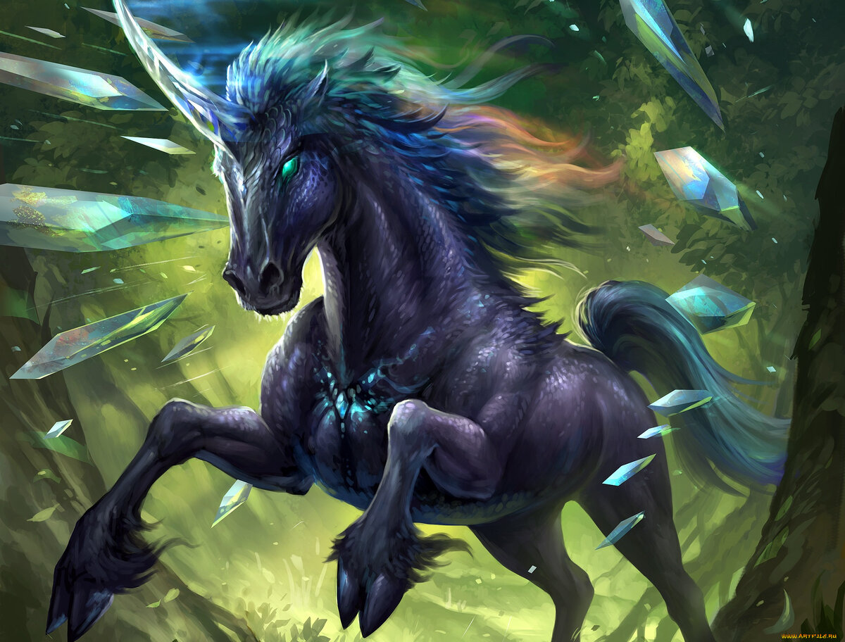 Единорог — в мифологии, конь с единственным рогом во лбу, символ духовной чистоты, одно из самых популярных вымышленных существ. Единорог имеет вполне реального прототипа, которым является носорог. Самые ранние упоминания единорогов найдены в Индии, более 4 тыс. лет назад. В древней Греции и Древнем Риме считались реально существующими животными. По преданиям, только девственница могла его укротить, и тогда он делался ручным, ложился на землю и засыпал.