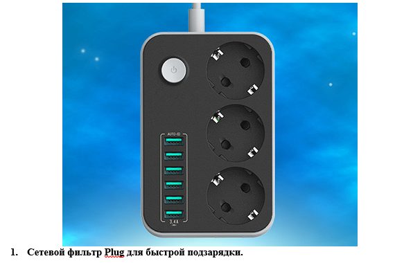 Среди огромного множества товаров из Китая, есть такие, которые пользуются успехом у покупателей, потому что зарекомендовали себя, как полезные и надежные приспособления. О некоторых из них подробнее. 1. ЕС Европейский Plug мощность полосы W/переключатель Сетевой фильтр, в виде удлинителя с тремя розетками и шестью USB-портами для быстрой зарядки на 3,5 А. Прибор оборудован кнопкой включения/выключения. Благодаря ей нет необходимости отсоединять удлинитель от сети питания. Особенности оснащения: · 6 USB гнезд служат для зарядки мобильных телефонов и других приборов с подобными разъемами, рассчитанными на 3.5 А. · Удлинитель оснащен специальным кабелем ПВХ 1,6 М. Его длина составляет 200 см (2 м), что вполне достаточно для использования в домашних условиях или в офисе. · Корпус производится из пластика высокого качества. · Внутренняя проводка включает медь типа «ciabatta», которая обеспечивает надежную защиту устройства от перегрузки при перепаде напряжения в электросети. Что, в свою о