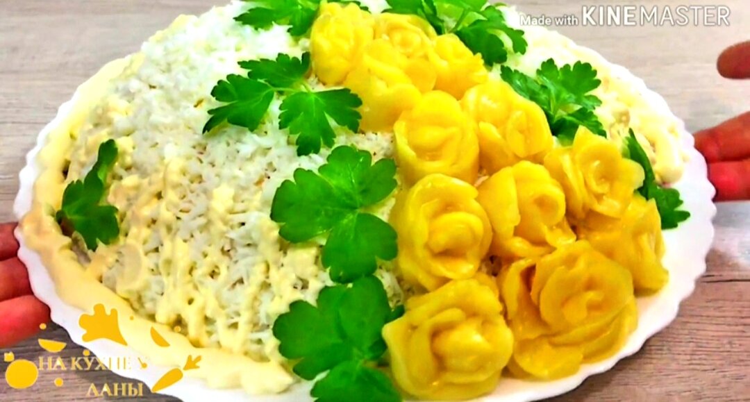 Всем привет друзья! Сегодня делюсь рецептом вкусного и простого в приготовлении Салатика Невеста Готовится из обычных ингредиентов. Получается очень вкусный, нежный, сытный и не жирный. Украсила я салат розачками из сыра и листиками петрушки, ведь невеста должна быть очень красивой. Салатик на столе смотрится очень эффектно и аппетитно. И на вашем столе не останется не замеченным! Детали приготовления вы можете посмотреть в моём коротеньком видео Жми 👇 Если рецепт вам понравился, тогда ставьте Лайк 👍С нетерпением жду Ваши Отзывы! Подписывайтесь на Канал здесь и на Ютубе НаКухнеуЛаны. Поддержите начинающий КАНАЛ!! Впереди будет много интересного!! До новых встреч мои дорогие) с Наступающим Новым Годом!!