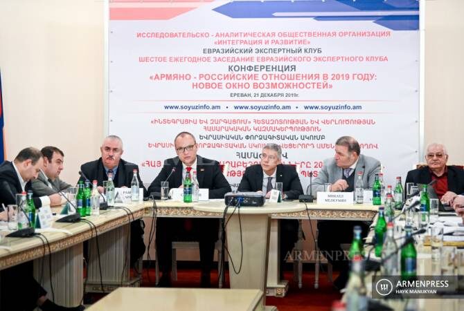 Армяно-российские отношения последовательно развивались и углублялись в 2019 году. Как передает Арменпресс, координатор Евразийского экспертного клуба, политолог Арам Сафарян выразил такое мнение на 6-й ежегодной конференции Евразийского экспертного клуба 21 декабря. «Общая оценка двусторонних и многосторонних отношений с участием обеих сторон, бесспорно, является положительной. Наша маленькая страна в этом году председательствовала в ЕАЭС очень достойно и конструктивно. Весной премьер-министры стран ЕАЭС были приняты в Армении, и они вернулись домой явно довольными и удовлетворенными. В начале октября в Ереване успешно работал Высший Евразийский экономический совет. Президент Ирана и премьер-министр Сингапура находились в Ереване вместе с руководителями ЕАЭС», - сказал Сафарян. По словам политолога, визит президента России Владимира Путина в Ереван, его встречи свидетельствуют об успехе, которым увенчалось председательство Армении в этой интеграционной структуре. «Главы Армении и Р