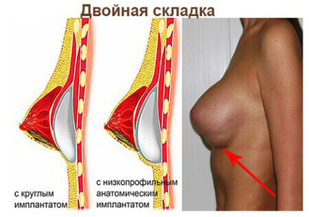 - Выступающий имплантат, образующий дополнительный объем на груди, что и создает эффект «двойного бюста».