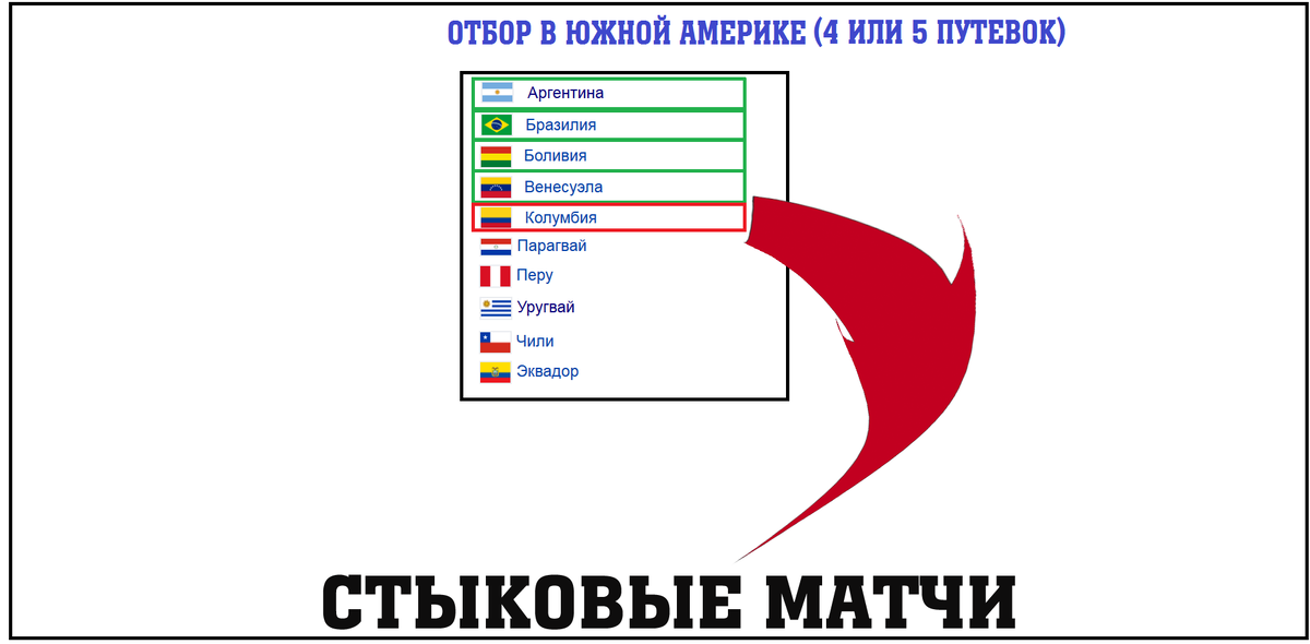 Как будет проходить квалификация к Чемпионату мира на разных континентах? В Южной Америке - простой отбор. Квалификация состоит из одного раунда. 10 команд разыграют 4 или 5 путевок. В конце приведем подробная таблица с датами квалификаций. Африканская квалификация состоит из трех раундов. Участие в отборе принимают 54 команды. Здесь разыграется 5 путевок. В Азии отбор состоит из 4 раундов. 46 азиатских сборных могут побороться за 4 / 5 путевки. Катар – хозяин ЧМ (автоматическая путевка). Северная Америка, она следующая в нашем обзоре. Участвуют 35 сборных, которым необходимо пройти 3 раунда отбора, после чего будет выявлено три, а быть может 4 лучшие команды. В Океании зарегистрировано 11 команд, но эти несчастные сборные могут и вовсе не получить представителя. Вот их жесткий отбор. Лучшая сборная Океании, скорее всего это вновь будет Новая Зеландия, получает право на стыковые матчи с командой из другого континента. В Европе утвержден новый формат. 55 команд поборются за