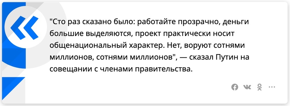 Оказывается Путин-то у нас против коррупции. И постоянно говорит своим чиновникам: работайте прозрачно.А они его не слушаются и всё равно воруют сотнями миллионов.Скорее даже миллиардами, ведь слова эти наш президент говорит о космодроме Восточный. Который, напомню изначально собирались построить за 150 миллиардов рублей. А сейчас эта сумма выросла до 300 миллиардов.