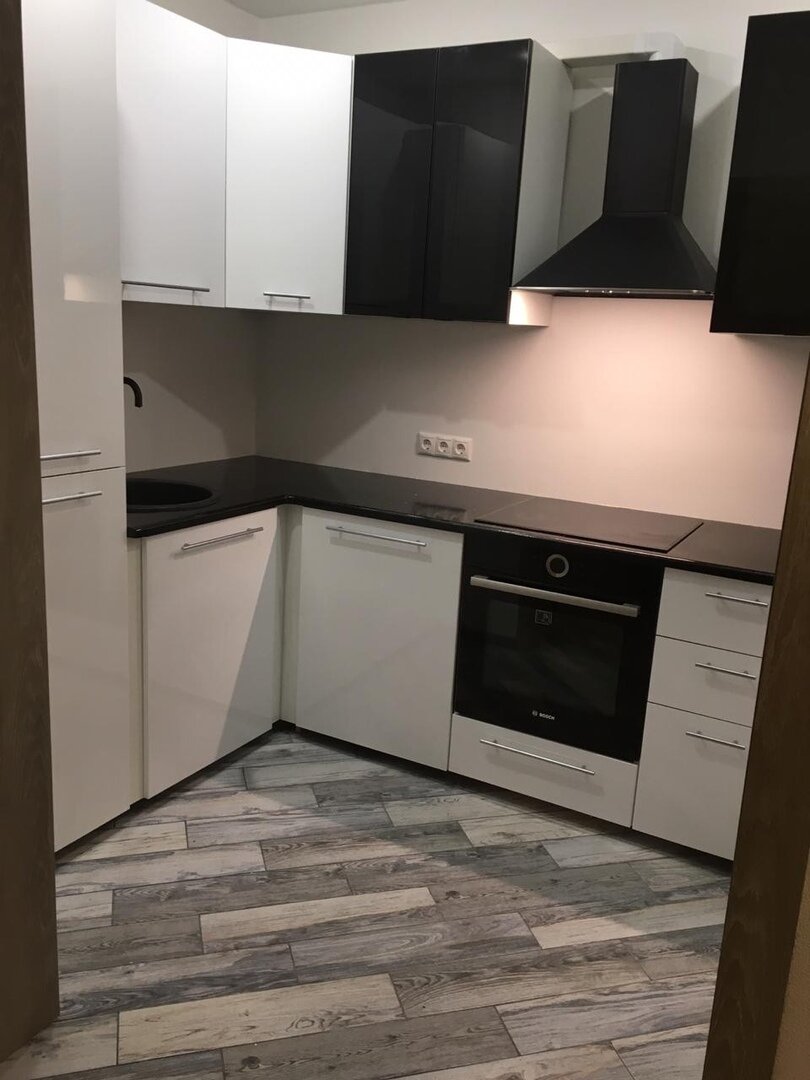 Начнем с начала так сказать, во первых, в дизайне такой кухни где преобладают черный и белые цвета (других то и нет вообще) и кругом лишь прямые углы, делать круглую мойку это просто издевательство над психикой человека, это первый косяк, который прям сразу бросается в глаза, в остальном вы еще можете видеть что все нормально.