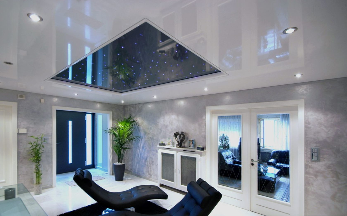Классификация натяжных потолков довольно сложна: они различаются по конструкции, виду материала, цвету и фактуре. На полотно можно нанести рисунок, сделать скрытую подсветку и различные визуальные эффекты. Все эти особенности влияют на свойства потолка и сложность его монтажа.