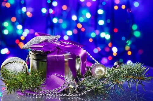 Вы сможете приятно удивить гостей, если на входной двери повесите праздничный веночек. Для его изготовления понадобится только терпение. Возьмите основу в форме окружности, заполненную натуральным оазисом (и оазис, и основу можно купить в специализированном магазине). Пропитайте оазис водой – тогда композиция простоит все праздники. Затем основу аккуратно заполните еловыми веточками одинаковой длины. Главным украшением будут ярко-красные бантики и блестящие зелёные бусинки. Чтобы бантики не осыпались, перетяните их зелёной проволокой и воткните в основу.