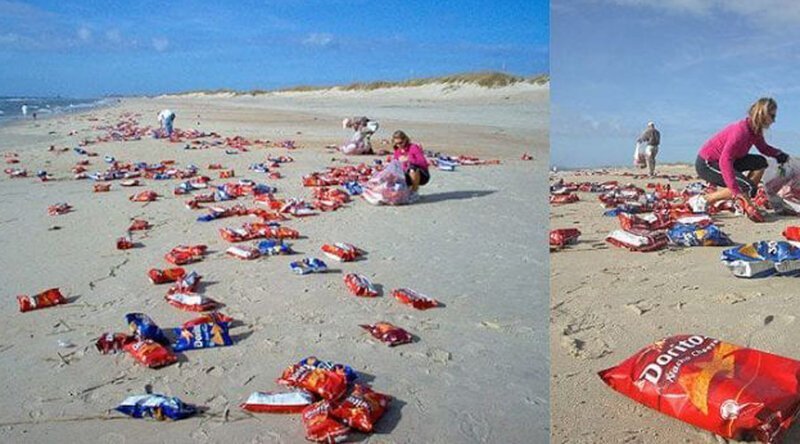 Необъятная бездна океана иногда решает пошутить с людьми и подкидывает им загадки. В итоге на побережье выносит вещи, которые когда-то давно океан словно забрал поиграть. Некоторые находки открывают новые взгляды на прошлое цивилизации, другие же привлекают внимание ученых и искателей. Запас чипсов Несколько лет назад серьезный шторм у берегов Северной Каролины чуть не перевернул грузовой танкер. По счастью, экипаж отделался легким испугом, но один из контейнеров смыло в океан. На следующий день жители прибрежных городов чуть не сошли с ума от радости: в контейнере перевозили чипсы Doritos, которых теперь людям хватит до конца жизни. Кроссовки Аналогичная ситуация сложилась в 2007 году. С борта танкера «Северный» смыло контейнер, наполненный новенькими кроссовками Reebok. Весь груз прибило к берегам Нидерландов, где в этих кроссовках бегают и по сей день. Военный самолет Вторая мировая война закончилась уже очень давно, но эхо боев будет преследовать человечество еще очень долг