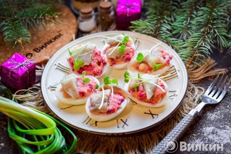 «Ленивая шуба» — вкуснейшая закуска, которая подойдет для празднования любого торжества. Она понравится всем, а с приготовлением нет много мороки, все довольно легко и просто. Для рецепта нам нужны ингредиенты, которые обычно используем для «Шубы». Вот только этот вариант закуски получается оригинальным, непривычным для нас. Половинки яиц мы наполним овощами и сверху уложим по кусочку сельди. Внешний вид блюда позволит вам с легкостью подавать его на праздничный стол, даже новогодний. Не знаю, друзья, как вы, но мне такие закуски нравятся очень, ведь традиционные салаты немного приелись. Поэтому будем экспериментировать! Ингредиенты: Способ приготовления: Подготовить все по списку. Чтобы весь процесс готовки не занял много времени, понадобится заранее отварить все овощи и яйца. Куриные яйца варим десять минут, после остужаем и чистим. Каждое надо разрезать пополам. Желтки удаляем, а белки убираем в сторонку. Желтки надо размять хорошенько вилкой. Морковь очистить и натереть на мелкой