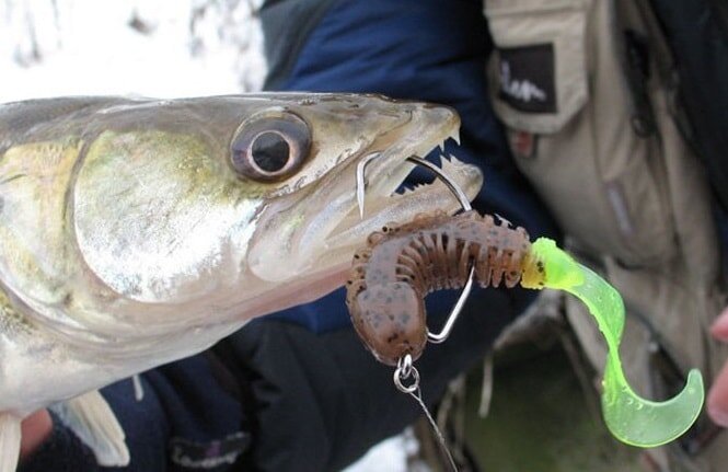 Для ловли судака зимой на силиконовые приманки подбирают жёсткое, но в том же время чувствительное удилище. При ловле на дроп-шот чувствительность удилища очень важна. Как правило, для ловли судака в январе таким способом берут спиннинг длиной до 1.2 метра, устанавливают на него безынерционную катушку, а на её шпуле размещают плетенку диаметром около 0.1 миллиметра. При необходимости плетёнку можно заменить на мононить диаметром от 0.2 до 0.3 миллиметра. При отсутствии короткого спиннинга вместо него можно использовать удильник для зимнего блеснения с инерционной катушкой и кивком.