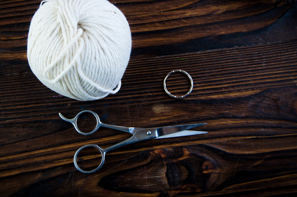 Иногда рукодельные идеи возникают, когда вдруг тот или иной материал попадает в руки. Вот в этот таз так и вышло: в FixPrise увидела хлопковый шнур в клубочке, 55р. и решила купить несколько. Пригодятся. Для вещицы, которую я сегодня вам покажу, нужно всего одно колечко для ключей, тот самый хлопковый шнур и ножницы. Первым делом - привязываем вот так центральную нить, сложенную вдвое (10-15см): Нарезаем 32 нити по 35-40см, не обязательно одинаковой длины, мы будем их подрезать. Складываем вдвое и еще раз вдвое. Подкладываем петлю под центральную нить, продеваем в петлю концы и затягиваем тугой узел. Следующую петлю накладываем с другой стороны, снова затягиваем. Плотно сдвигаем их вверх к кольцу, чтоб узелки плотно прилегали друг к другу. У меня получилось 32 узелка, а вот 33-й завязываем у основания так, чтобы не сползали все завязанные выше. Подстригаем нашу, пока бесформенную штуку в виде перышка. Стрижка эта ещё не финальная, кстати. Теперь берём щётку для животных или жёстки