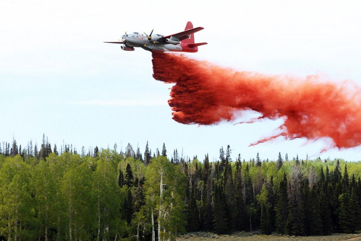 Авиацию начали активно применять для тушения пожаров с середины прошлого века. С тех пор менялись сами самолёты, менялся подход к тушению с воздуха, разрабатывались новые рекомендации для пилотов и также менялся огнегасящий состав. Долгое время для тушения пожаров в воздухе использовалась обычная вода, но в условиях засухи её эффект недолговечен, поэтому её можно сбрасывать непосредственно на огонь для с надеждой, что вода потушит огонь. Огнегасящим составом является порошком, который растворяется в воде, он содержит загустители, для меньшего распыления воды и различные химикаты для создания огнегасящей пены и огнезащитного геля. Благодаря добавлению этих химикатов состав может сохранять свои свойства до нескольких дней, именно поэтому целесообразнее сбрасывать огнегасящий состав перед движущимся огнём или по периметру горящего участка, чтобы создать, так называемую искусственную просеку - зона через которую огонь распространиться не сможет. Эта зона даст возможность отделить горящий