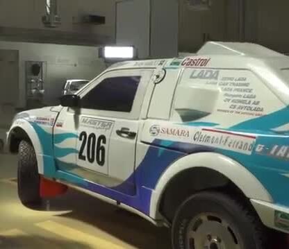 Этот автомобиль по праву можно назвать самой крутой и редкой восьмёркой в истории. У этого автомобиля очень много индивидуальных фишек. Задние фонари как от обычной восьмёрки, классические ручки, ультралегкий аутентичный пластиковый логотип. Эта машина построена для ралли рейдов категории Т3, поэтому её кузов сверхлегкий. Он сделан из кевлара, из которого делают бронежилеты. Также в производстве использовался стеклопластик. Вместо боковых стекол – плексиглаз, приделанный кнопками, и он имеет тонировку, которую бы не одобрили ли сотрудники ДПС. Сзади расположены Sand Trake, которые должны быть в комплекте любого раллийного автомобиля. Конечно здесь много отверстий для охлаждения двигателя и салона. Производители даже сделали дырку на месте крепления номера просто под форму номерного знака. Это машина полноприводная и вся её трансмиссия взята от невероятного Porsche 959. Очень лёгкая дверь, в которой механизм закрывания заменён обычной верёвкой. Салон оснастили пр