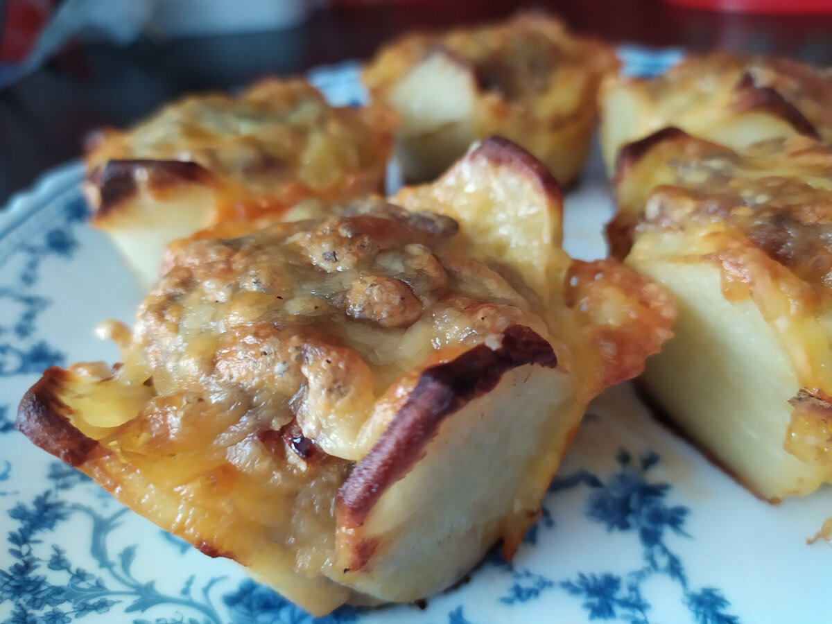 Многие подумали, наверно из названия, что если маффины, то значит что - то сладкое. Однако этот рецепт несладких маффинов из картошки и мяса. Такой рецепт еще называют для ленивых. Не нужно тратить много времени. Сложил все в форму и поставил в духовку. А пока все готовится, можно расслабиться, посмотреть новости и т. д. Рецепт Подготовьте продукты: Очистить картофель, порезать кружочками. Включите духовку на этом этапе, чтобы сэкономить время. Порезать лук (мелко) и смешать его с фаршем, добавить туда же яйцо, соль, перец. Форму смазать раст. маслом. Выложить картошку как показано на фото ниже: У меня оставалась картофельное пюре со вчерашнего ужина. Не люблю выбрасывать продукты. Поэтому положила ложку в каждую форму (если нет пюре, то просто положите ложку фарша, а следом пластик сырой картошки). Потом положила фарш, затем опять ложку пюре и сверху опять ложку фарша. Вместо пюре можно положить между фаршем пластик картофеля или грибы. Ставлю форму в нагретую духовку (180 градусов).