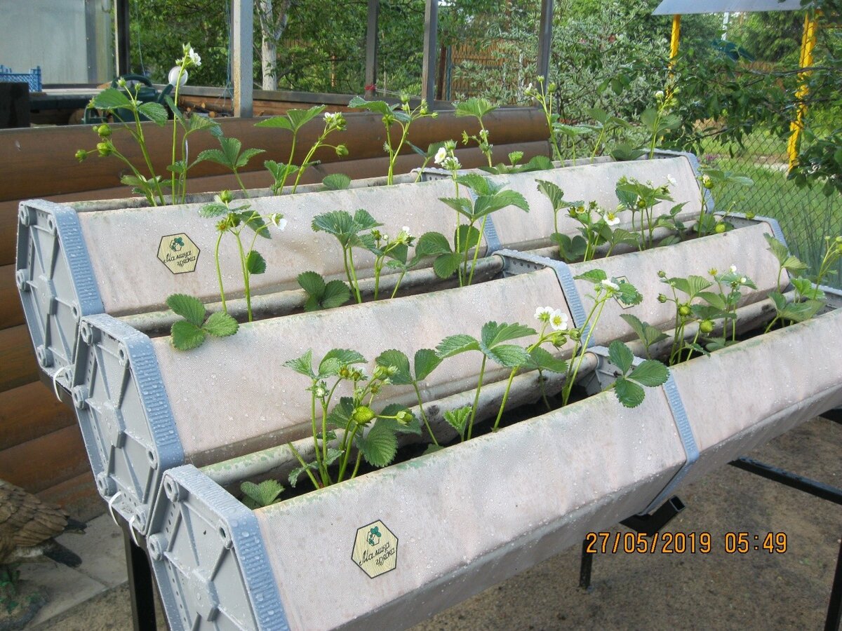 Выращивание клубники и цветов в декоративных трубах.