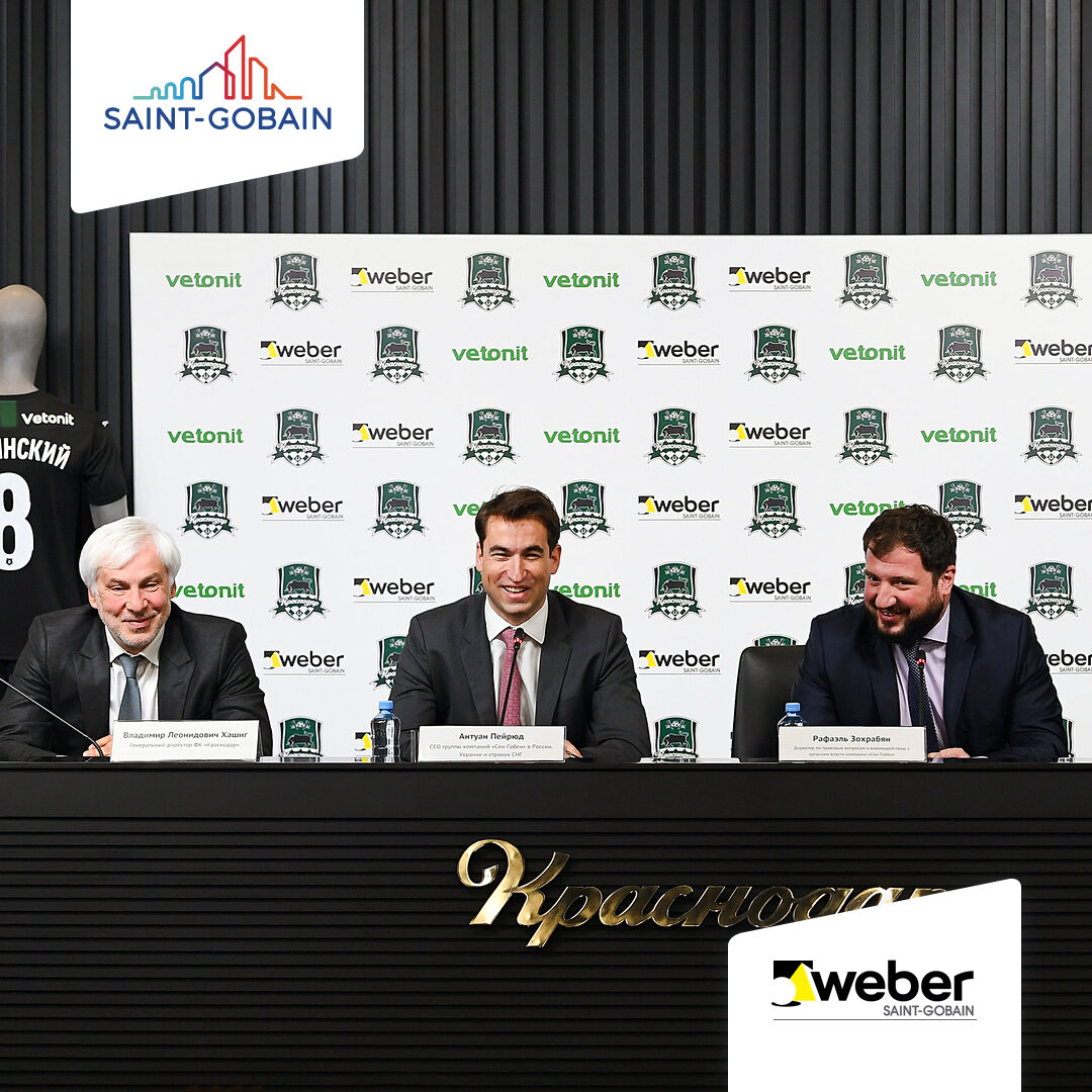 Бренд Weber-Vetonit группы строительных компаний «Сен-Гобен» стал официальным партнером футбольного клуба «Краснодар». Контракт вступил в силу 1 декабря 2019 г. и будет действовать до конца 2020 г. с возможным продлением на 2021 г. Подробности партнерства обсудили на пресс-конференции, которая состоялась перед матчем «Краснодар» — «Тамбов». В ней приняли участие: Официальное партнерство с футбольным клубом для Weber-Vetonit стало логичным продолжением предыдущего сотрудничества: ранее продукция бренда использовалась при возведении знаменитого стадиона «Краснодар» и при устройстве парка рядом с ним. Контракт с клубом включает размещение логотипа бренда на форме футболистов. В рамках сотрудничества также планируется ряд совместных общественных проектов и коммерческих мероприятий. Партнеров объединяют схожие ценности — семья, воспитание будущих поколений, развитие и помощь в продвижении общественно значимых инициатив. Так, ФК организовал собственную Академию для детей. Около 12 000 ю