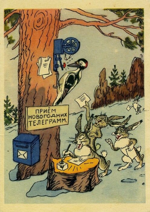Еще каких то 20 лет назад мы не отправляли открытки в сети интернет, а получали их по почте. И, скажу вам честно, это было гораздо приятнее, нежели сейчас, разосланные бесчувственные открытки всем под ряд. Почта по праздникам была просто завалена письмами и посылками, а в очереди можно было простоять прилично. Однако почта в те времена работала не как сейчас, а нормально. Посылки приходили не побитыми, письма доставлялись вовремя, а вот сейчас с этим всем просто беда( Перед новым годом часто писали на открытках предупреждение «Отправляйте поздравительные открытки заблаговременно» И так, давайте посмотрим новогодние открытки 1950-х годов Я в восторге от реалистичные людей на открытках. В поздних подборках они принимают уже более мультяшный вид. В 1961 м году Юрий Гагарин полетел в космос и, конечно же, появилась тематическая подборка открыток по этому поводу. Конечно же, многие открытки были на тему сказок. И с картинки нам улыбались сказочные герои. Что уж говорить про ху