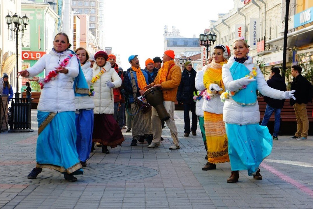 Вы, наверное, видели, как по городу ходит строем группа из 10-20 человек с барабанами, одетая в разноцветные светлые одежды и поющая непрерывную песню "Харе Кришна Харе Рама".