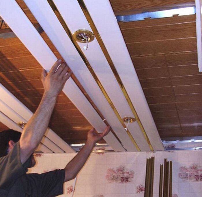В заключение темы можно добавить несколько слов о светильниках, ведь они - неотъемлемая часть потолков. Подойдут и точечные светильники и даже люстры, если позволяет высота потолка. В зависимости от выбранных осветительных приборов способ и порядок установки реечного потолка могут изменяться. Установку точечных светильников необходимо совмещать с креплением реек. Люстру же можно подвесить и после монтажа потолка, главное - не забыть вывести наружу электрический кабель.
