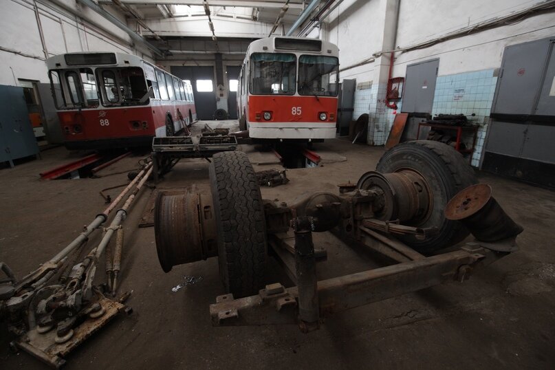 Сразу за воротами депо Андрей Тихонов начинает свой рассказ. По словам главного инженера, учреждение формально разделяется на три цеха: цех эксплуатации, ремонтный цех и вагоноремонтные мастерские. Формально, поскольку у первого отделения, по сути, нет своего помещения, кроме диспетчерской и медпункта. Но между тем по численности оно самое большое. Помимо работников двух упомянутых служб в него входят все водители и кондукторы троллейбусов.