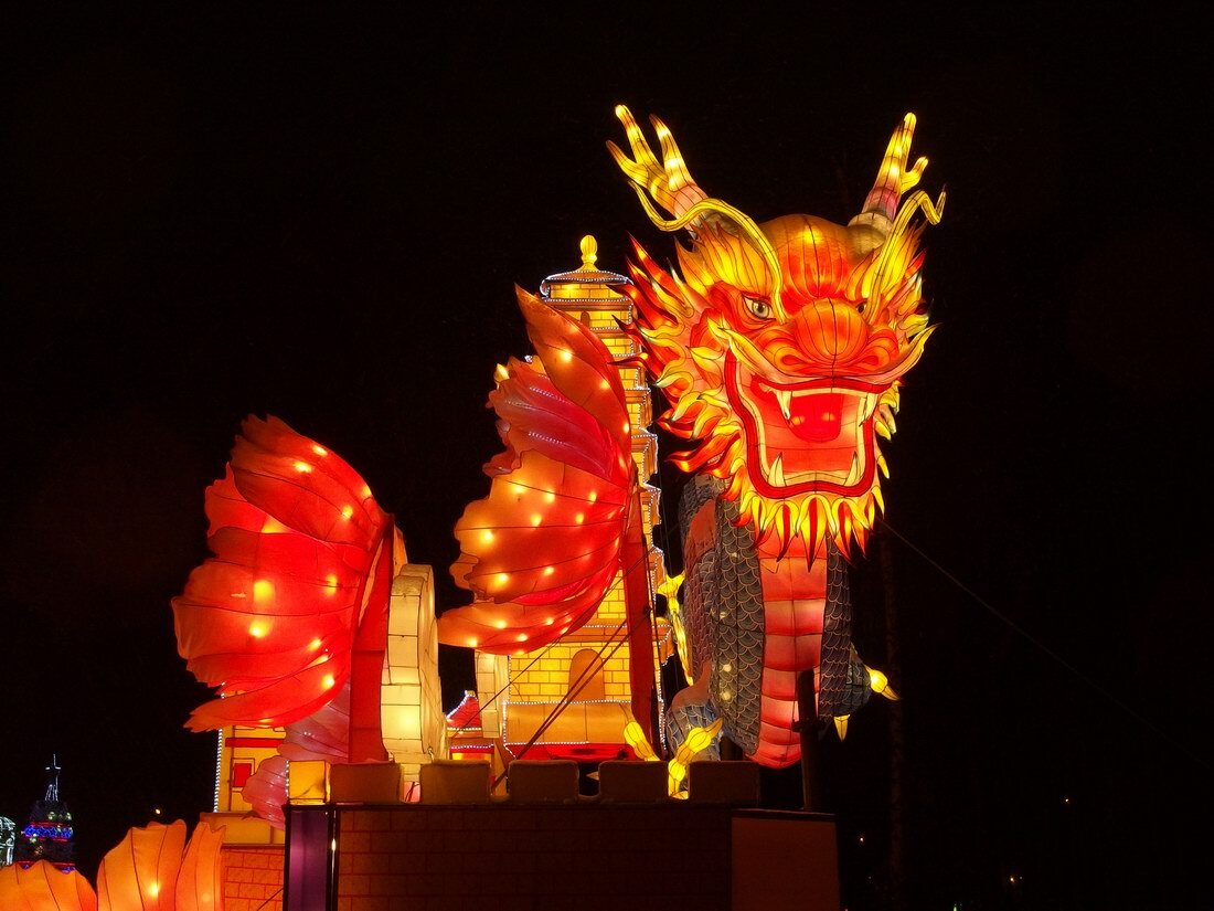 На центральной аллее нас встречает фигура дракона, символа Китая. А еще нас ждут панды, морские обитатели, волшебные цветы, птицы и даже дворцы!