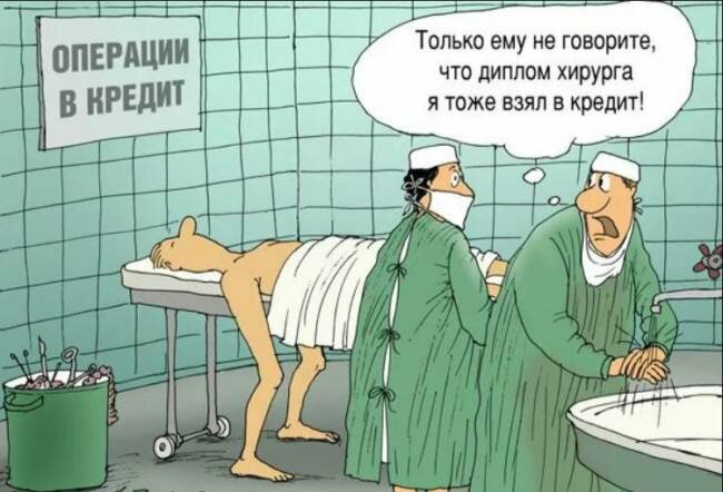Больной просыпается после тяжелой операции и спрашивает медсестру: - Скажите, а почему вы занавесили все окна в мою комнату? - Дело в том, что напротив ваших окон, через улицу идет сильный пожар, и мы бы не хотели, чтобы вы, очнувшись, решили, что операция завершилась неудачей... 😁😁😁 Хирург возвращается с работы домой, к нему с радостным лаем бросается любимый пес. Хирург его гладит и приговаривает: - Миленький, хорошенький, зря подлизываешься, у меня сегодня операций не было... 😁😁😁 Доктор, чтобы избавиться от этой болезни, я готов продать душу дьяволу! - Ну, батенька, к чему такие тяжкие мысли? Мы поможем вам бесплатно - и вы спокойно отдадите ее Богу. Нравятся наши публикации? Подписывайтесь, ставьте классы и комментируйте!!!! Всем добра и позитифчика, на весь день🙂